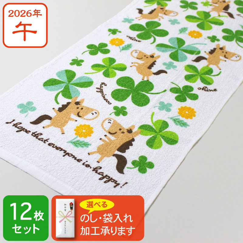 干支タオル お年賀タオル クローバー ウマ 2026年 午年 馬 粗品 ご挨拶・120枚セット