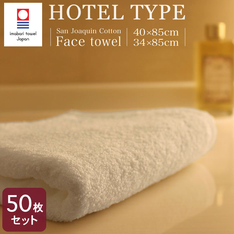 【今治タオル】 ホテル仕様 フェイスタオル サンホーキン綿 白 2サイズ展開 <約34×85cm 350匁> <約40×85cm 440匁>・50枚セット
