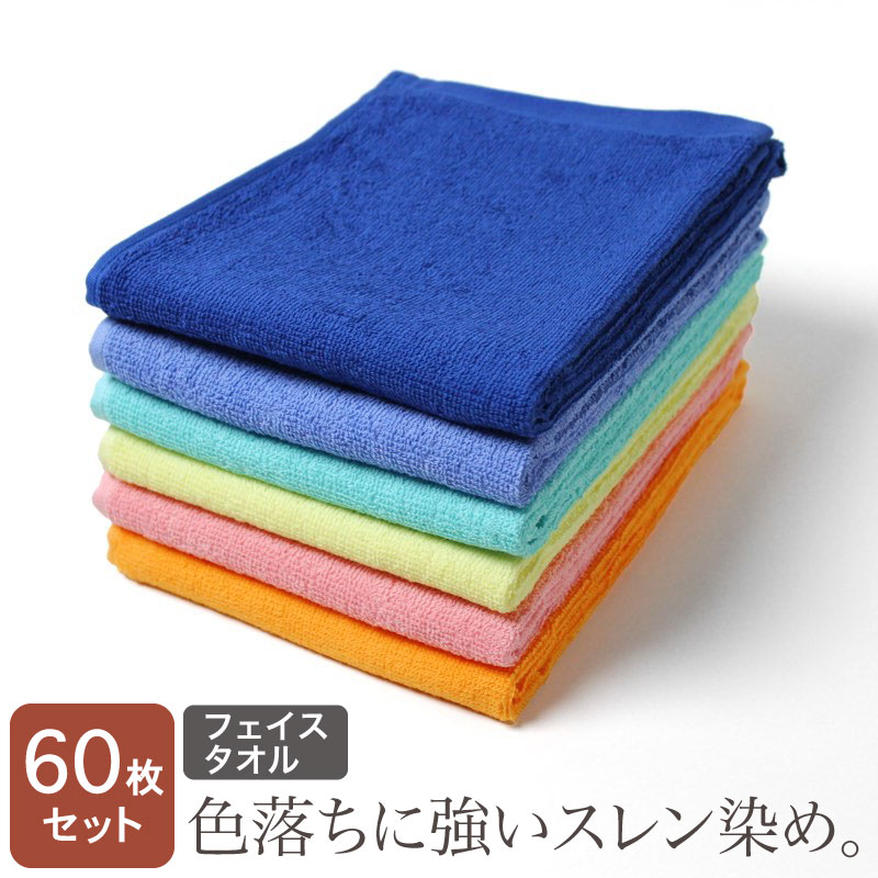 業務用 スレン染め フェイスタオル・240匁 (キレイめカラー)・同色60枚セット
