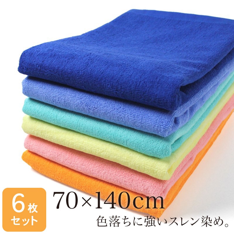 業務用 スレン染め 大判バスタオル・1000匁 約70×140cm (キレイめカラー)・同色6枚セット