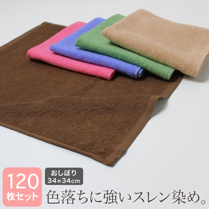 業務用 やわらか スレン染め おしぼり 約34×34cm 細番手 120匁・同色12枚セット