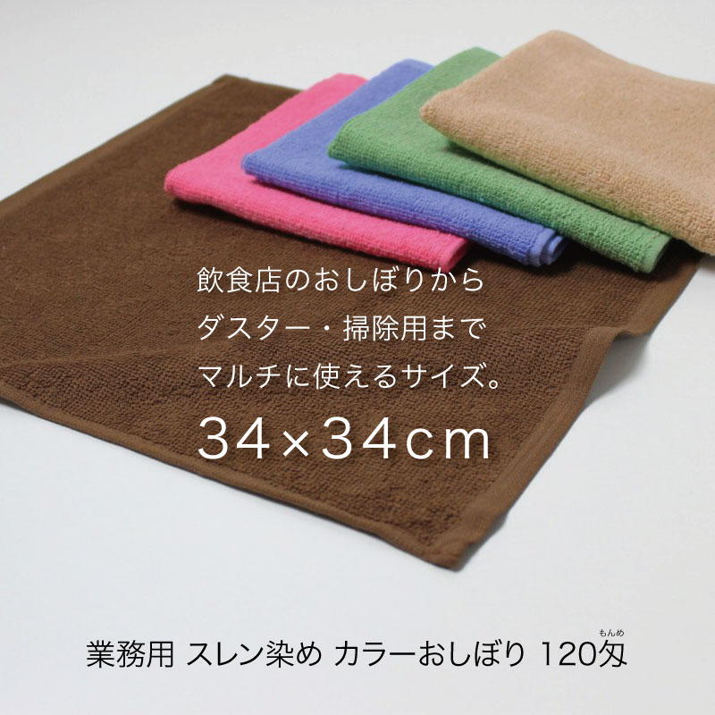 業務用 スレン染め カラーおしぼり 正方形 約34×34cm 120匁・同色12枚セット