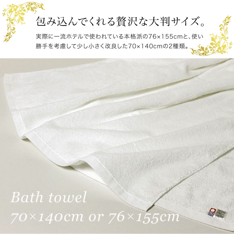 【今治タオル】 ホテル仕様 大判バスタオル サンホーキン綿 白 厚手 2サイズ展開 <約70×140cm 1600匁> <約76×155cm 2000匁>