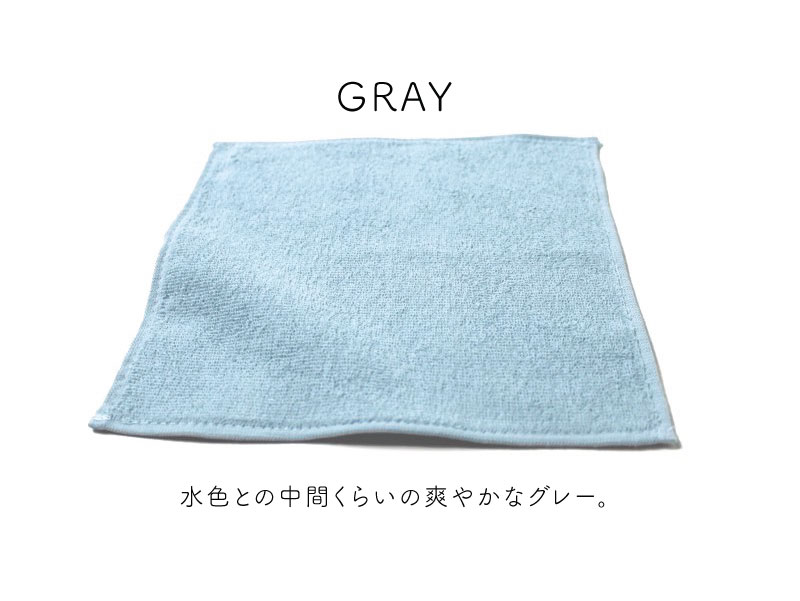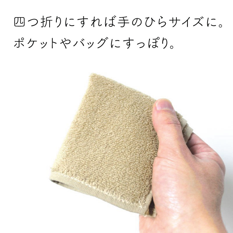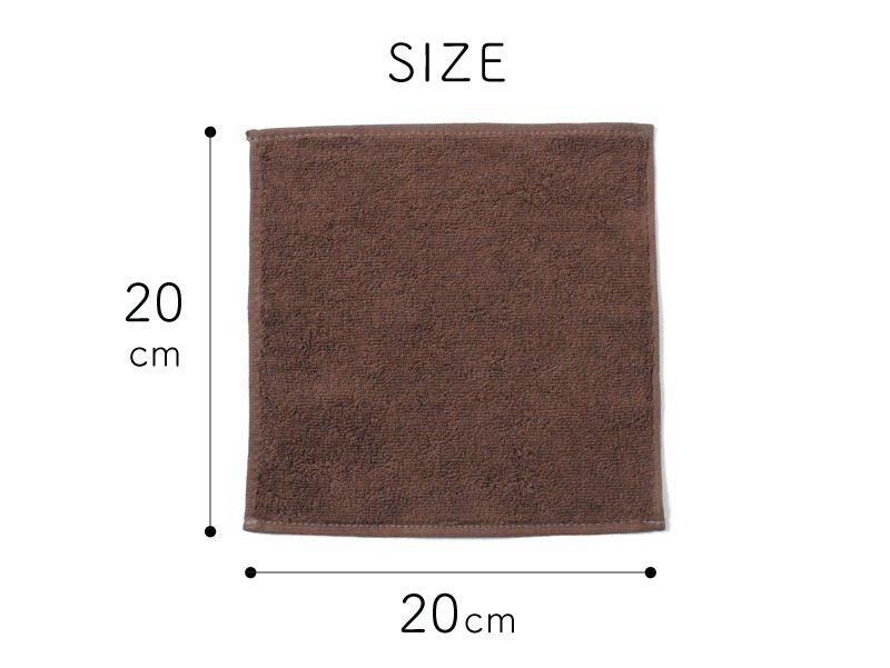 20cm角のミニサイズのタオルハンカチ。4つ折りにすれば、ポケットにすっぽり収まるコンパクトサイズです。パイルは短めで、しっかりと目の詰まったタイプだから、耐久性にも優れており、繰り返しお洗濯をする業務用としてもおすすめです。菌の増殖を抑制し、防臭効果のある抗菌防臭加工付きなのも嬉しいポイント。
