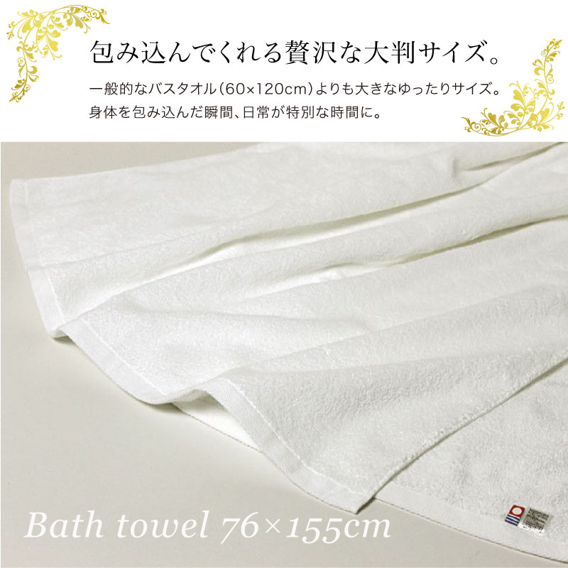 【今治タオル】 ホテル仕様 大判バスタオル サンホーキン 白 2000匁 約76×155cm