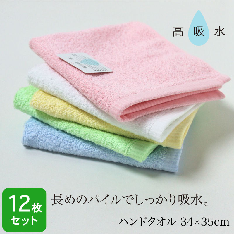 高吸水 カラーフェイスタオル 約34×80cm やや厚 330匁・同色12枚セット