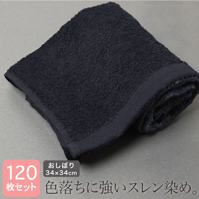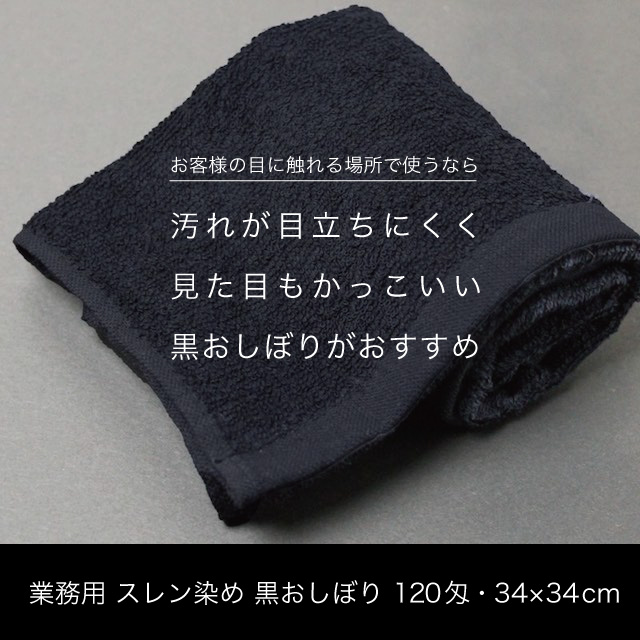 業務用 スレン染め 黒おしぼり 正方形 約34×34cm 120匁・12枚セット