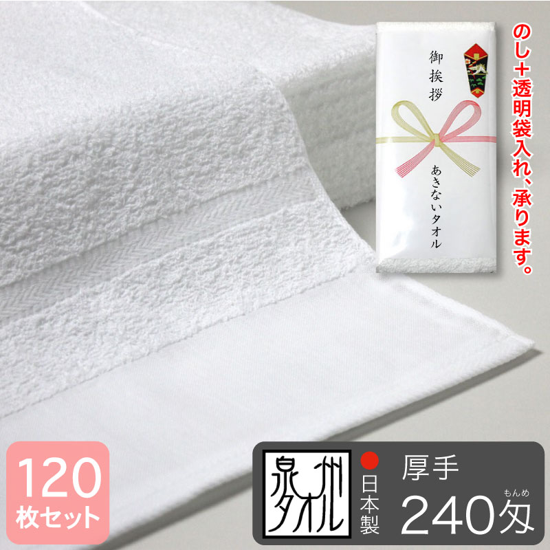 平地付き 白フェイスタオル 260匁 厚手&長め 粗品タオル 泉州タオル 日本製・120枚セット