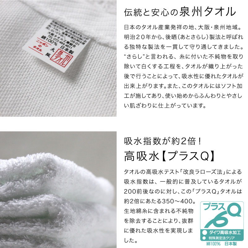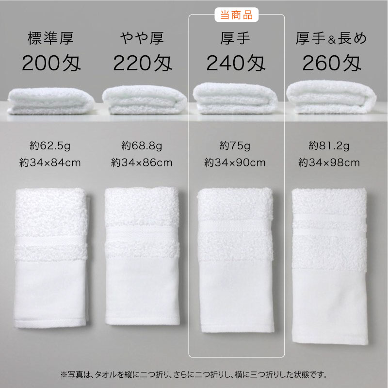 平地付き 白フェイスタオル 260匁 厚手&長め 粗品タオル 泉州タオル 日本製・12枚セット