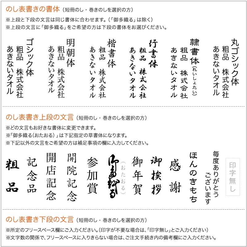 のし選択の方→表書きの書体