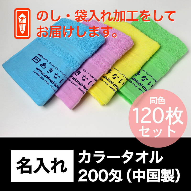 名入れ カラータオル・200匁(中国製) 標準厚 粗品用・600枚セット
