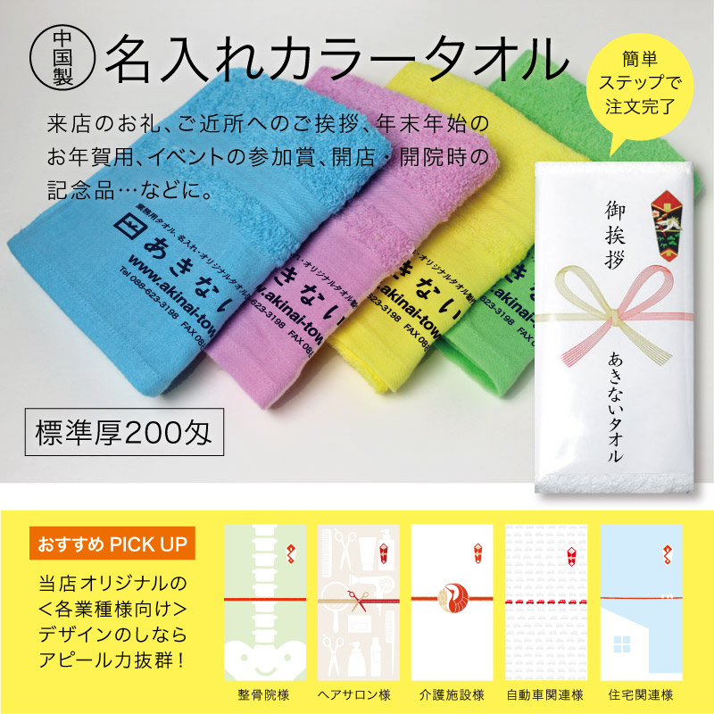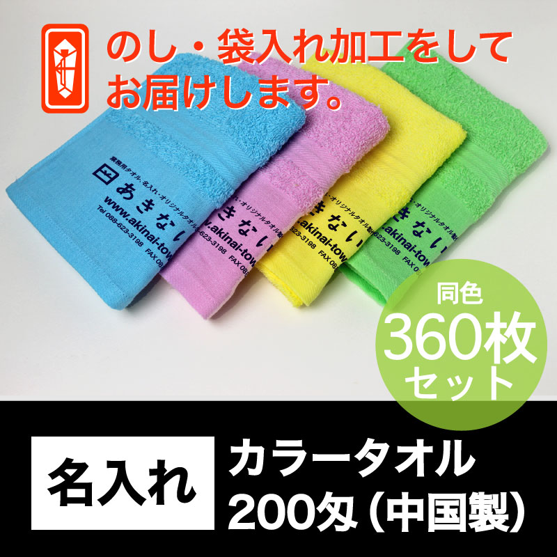名入れ カラータオル・200匁(中国製) 標準厚 粗品用・600枚セット