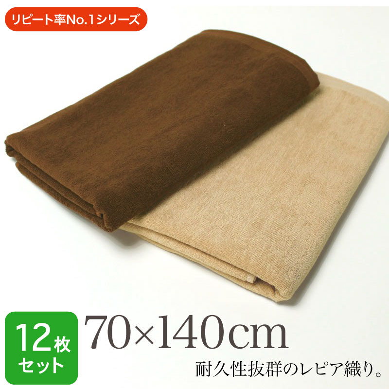 業務用 レピア織り スレン染め 超大判バスタオル・2000匁 約100×200cm (ブラウン系)・同色12枚セット