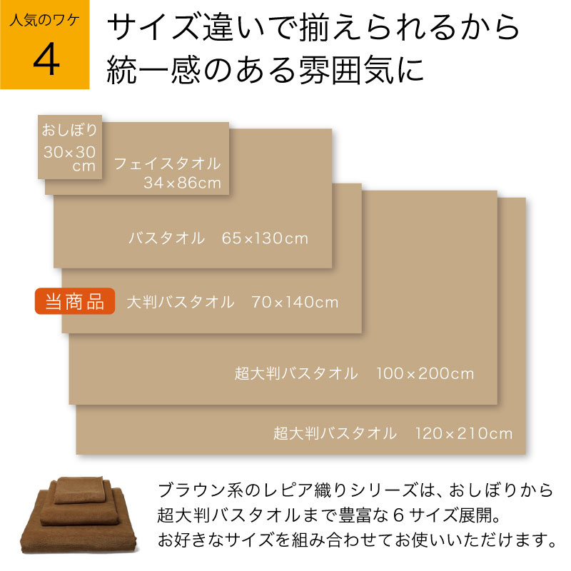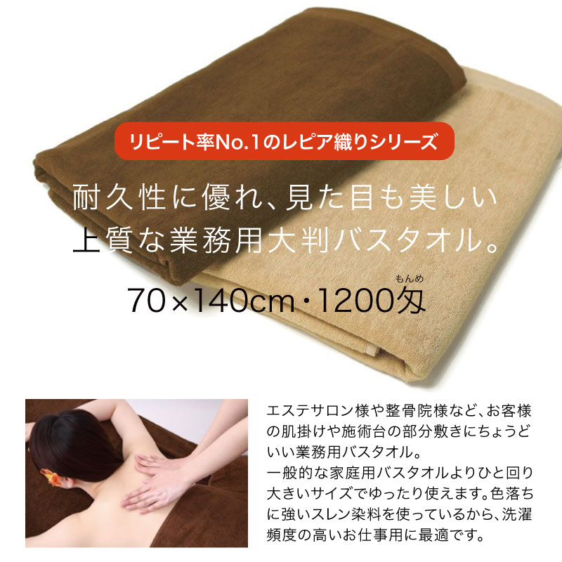 業務用 レピア織り スレン染め 大判バスタオル・1200匁 約70×140cm (ブラウン系)